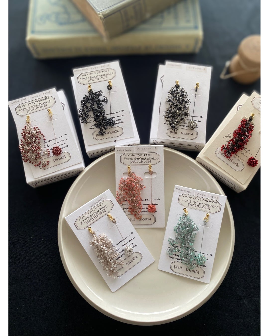 フランスアンティークビーズを使用した作品は、現行ビーズにはない趣きがあります。
