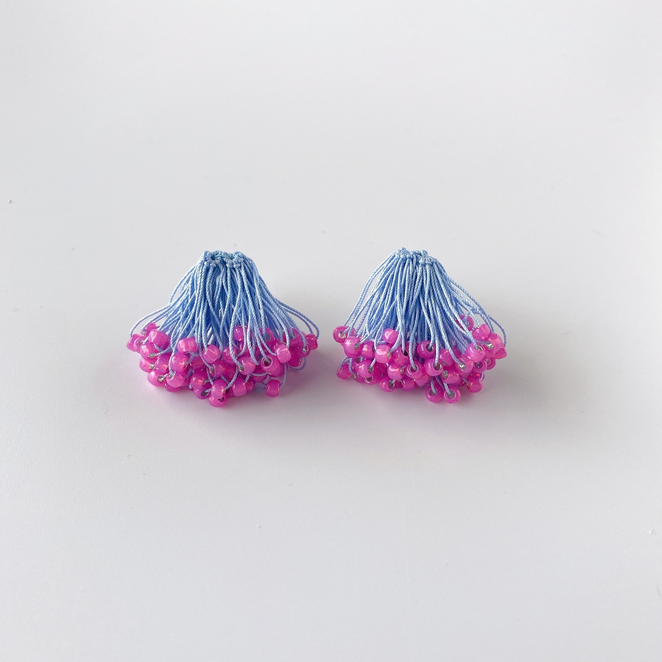 柔らかさを出すため、糸は長めにし、ピコにビーズを入れて、ゆらゆらと海を漂うAnemoneを表現しました。カラフルな色合わせが、ひときわ目を引きます。